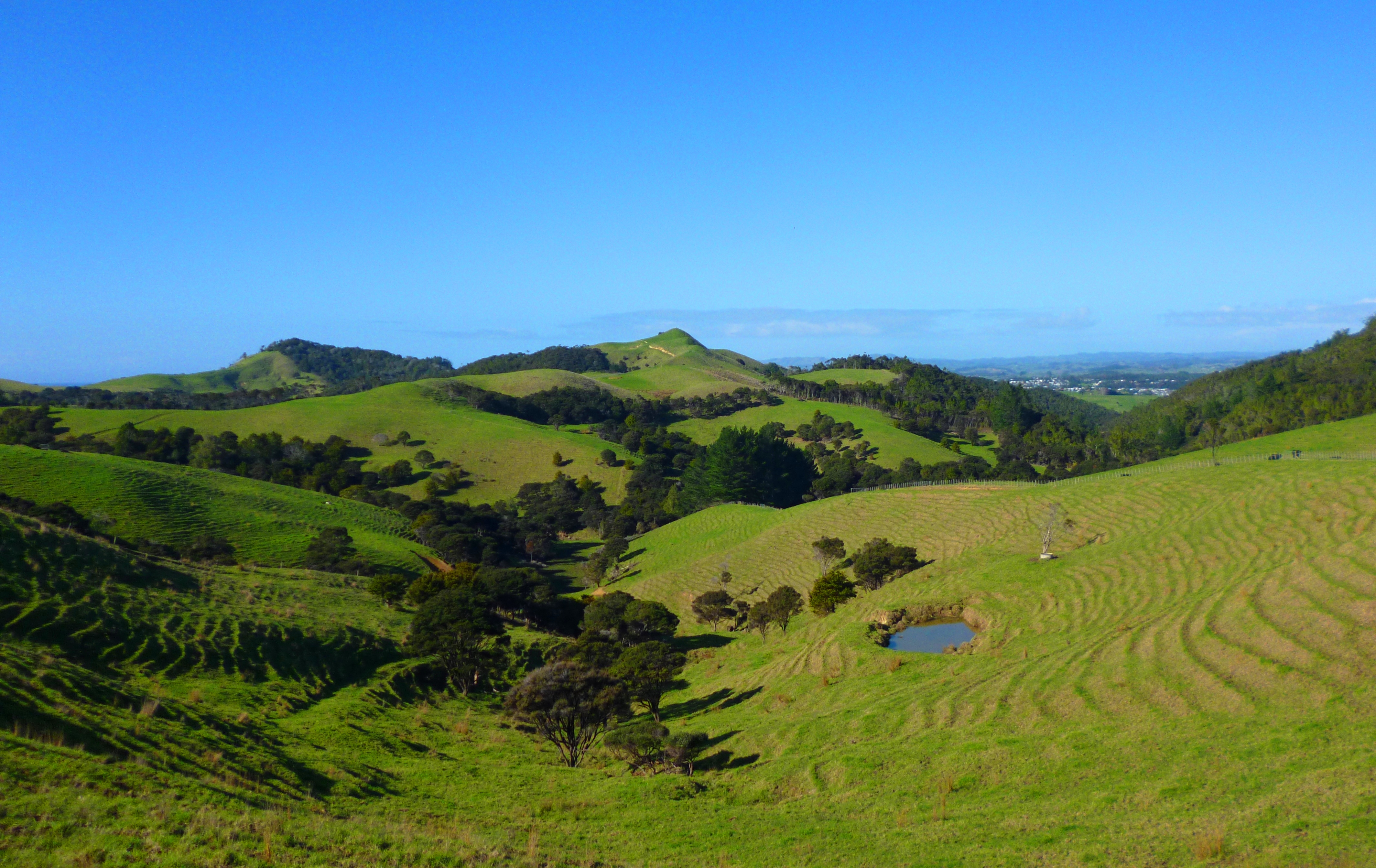 There was a rather difficult section through farmland; we crossed some very steep and muddy paddocks, containing bullocks who showed an unnerving interest in us. Hannah got effluent in her shoes; she found this cooled down the burning soles somewhat.