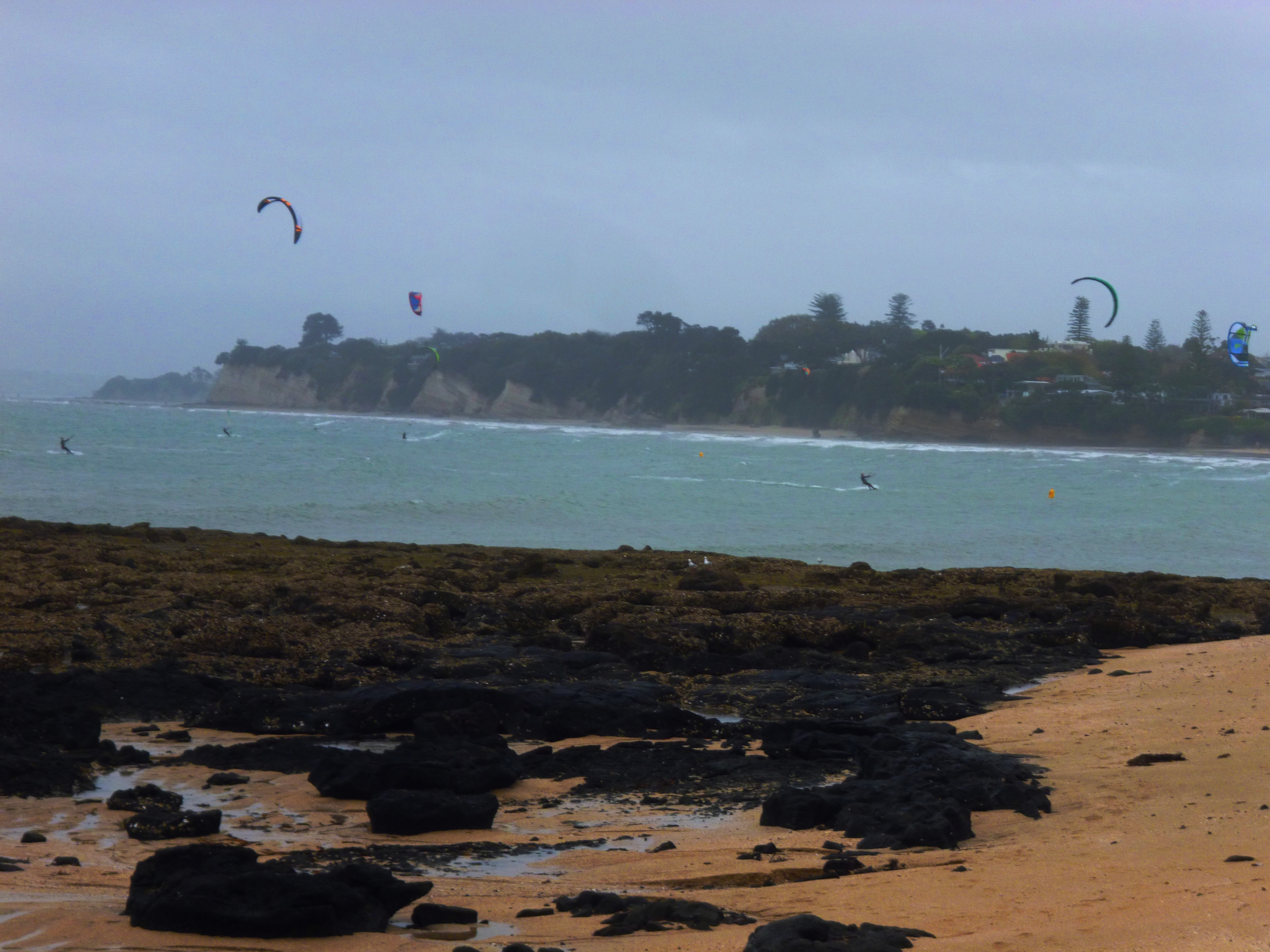 Kite-surfers at Takapuna